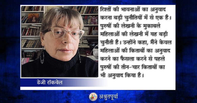 डेजी ने कहा, रिश्तों की भावनाओं का अनुवाद करना बड़ी चुनौतियों में से एक है। पुरुषों की लेखनी के मुकाबले महिलाओं की लेखनी में यह बड़ी चुनौती है। उन्होंने कहा, मैंने केवल महिलाओं की किताबों का अनुवाद करने का फैसला करने से पहले पुरुषों की तीन-चार किताबों का भी अनुवाद किया है।