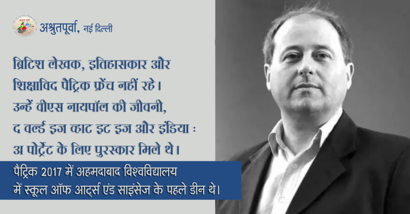 नई दिल्ली। ब्रिटिश लेखक, इतिहासकार और शिक्षाविद पैट्रिक फ्रेंच का पिछले दिनों लंदन में निधन हो गया। वे चार साल से कैंसर से जूझ रहे थे। वे 57 वर्ष के थे। उन्हें वीएस नायपॉल की जीवनी, द वर्ल्ड इज व्हाट इट इज और इंडिया : अ पोर्ट्रेट के लिए पुरस्कार मिले थे।